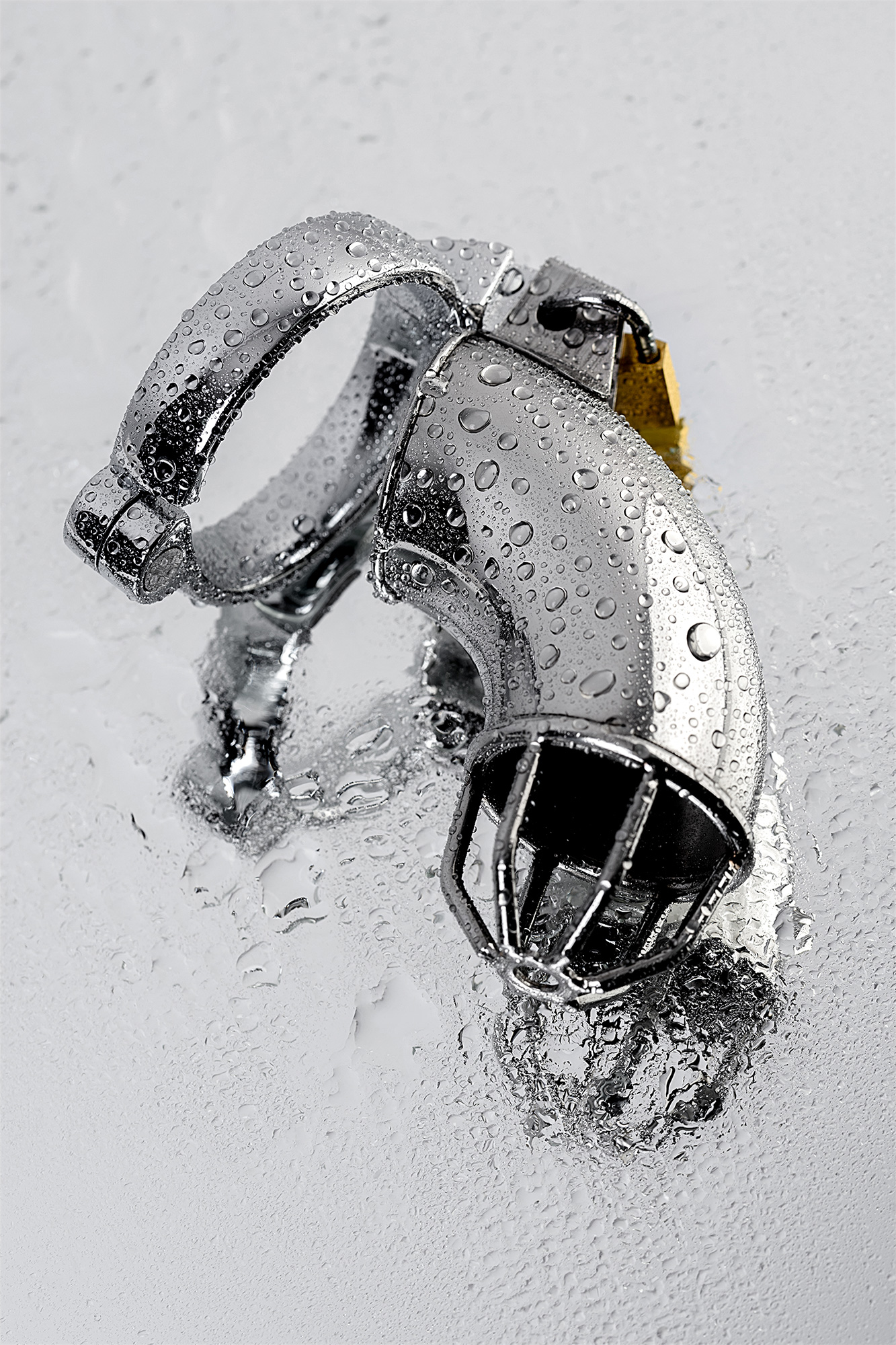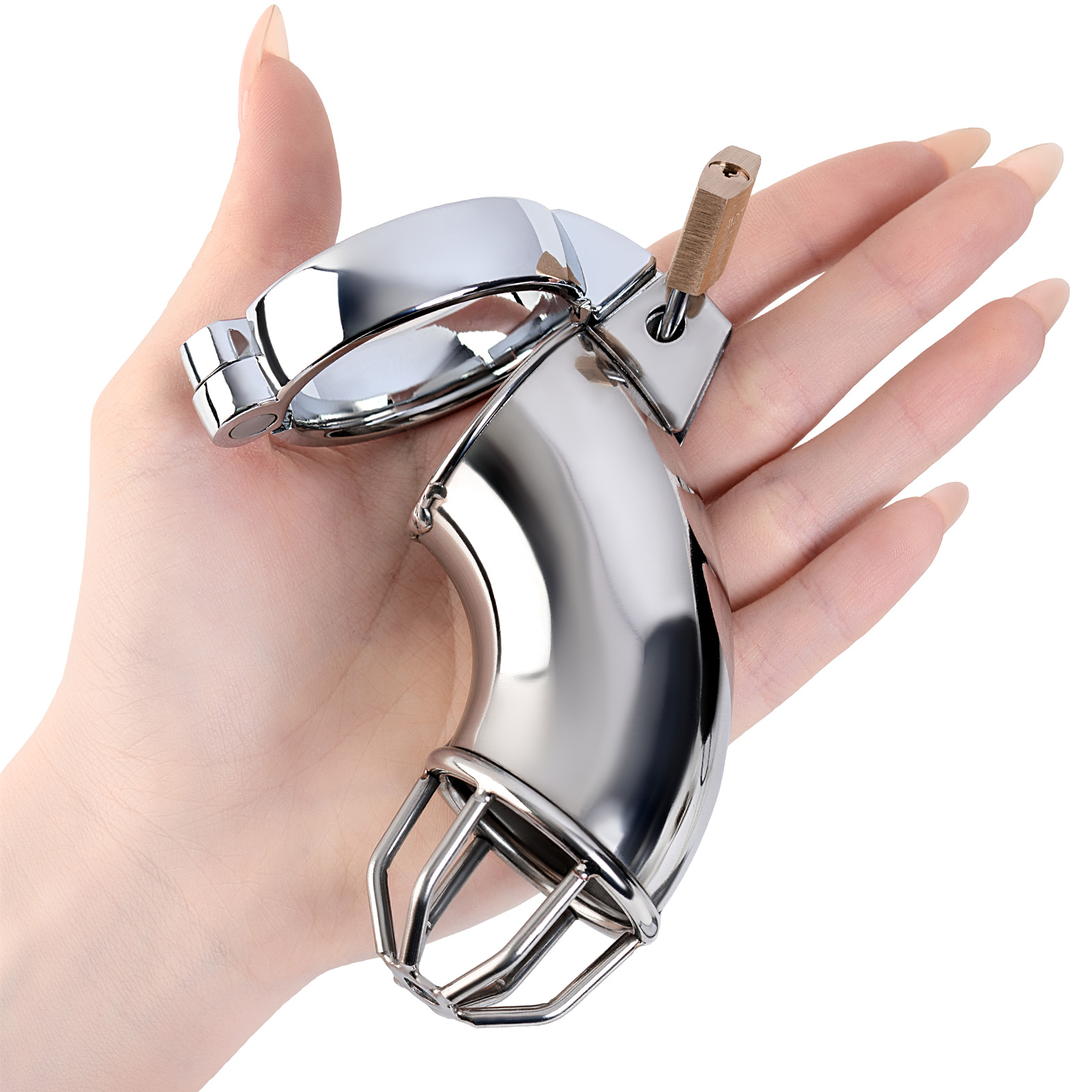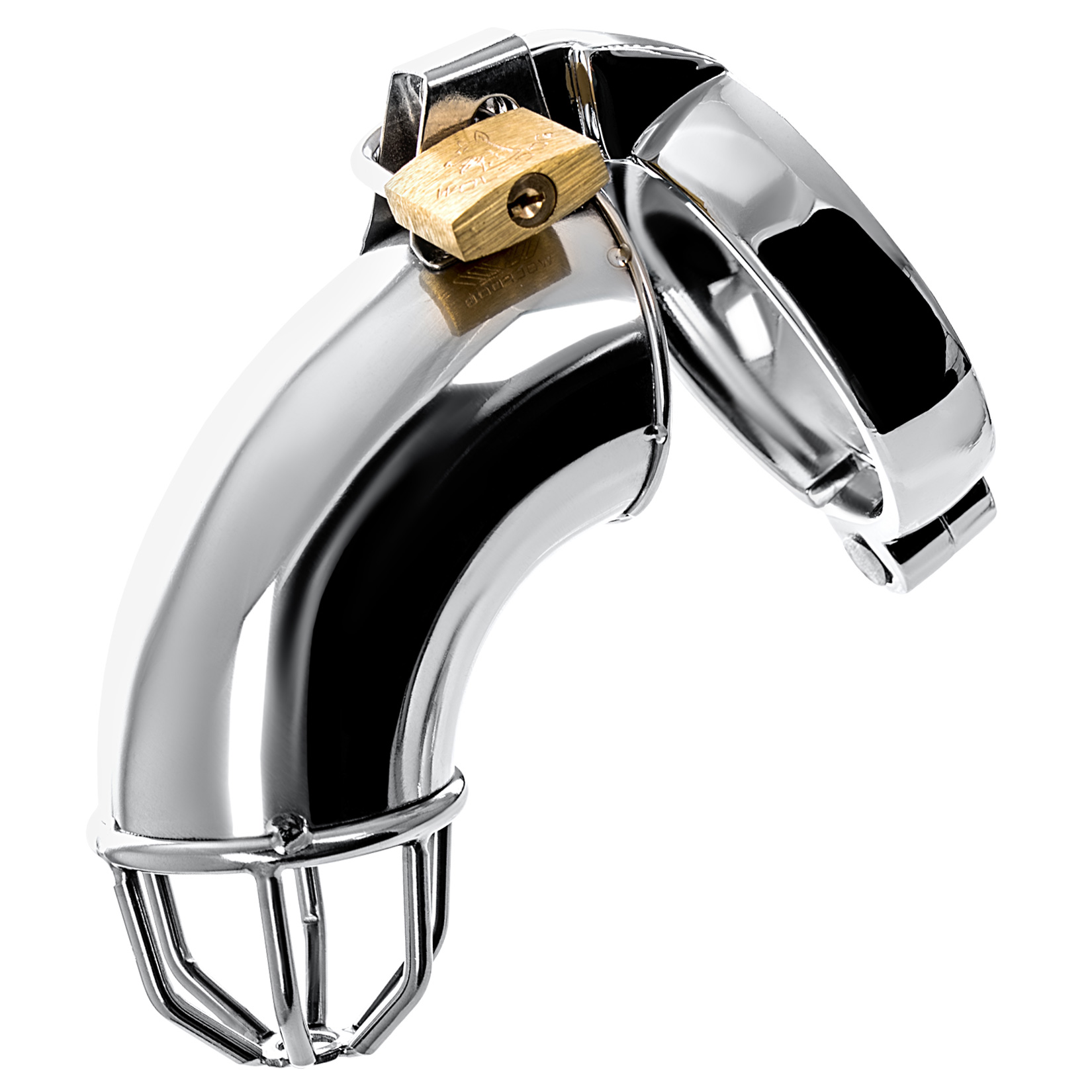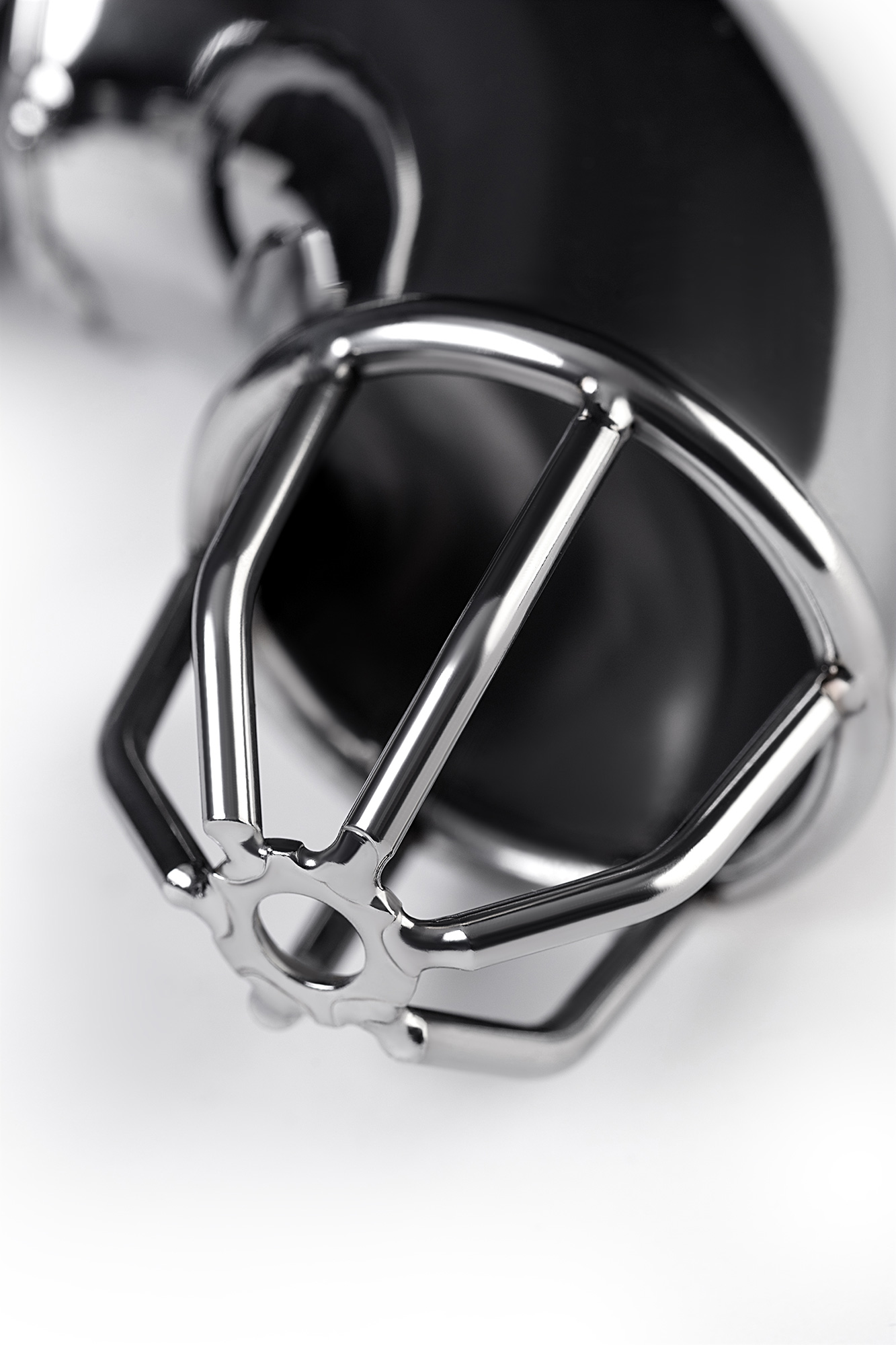 Мужской пояс верности с клеткой на головке прекрасно подходит для постоянного ношения. Длина «рукава» 13 см. В комплекте 3 кольца разных диаметров: 4, 4.5, 5 см. В комплекте также идет замок с тремя ключами.