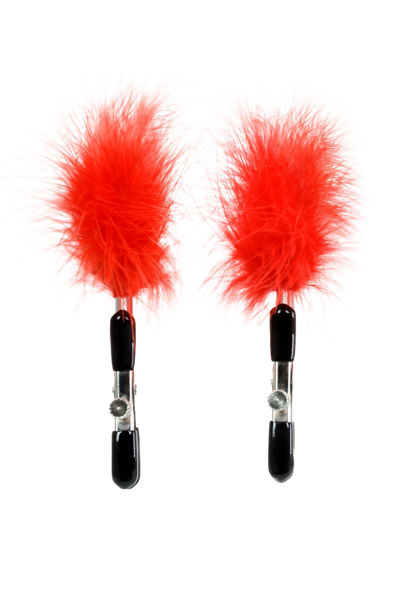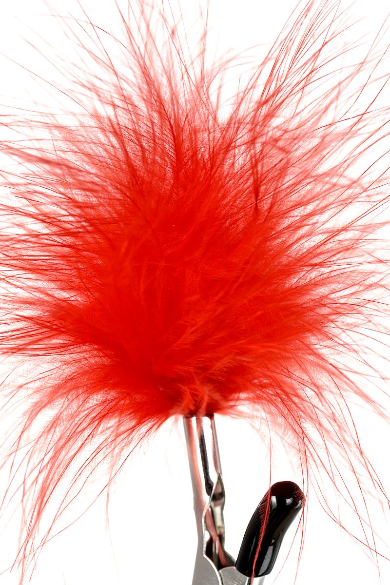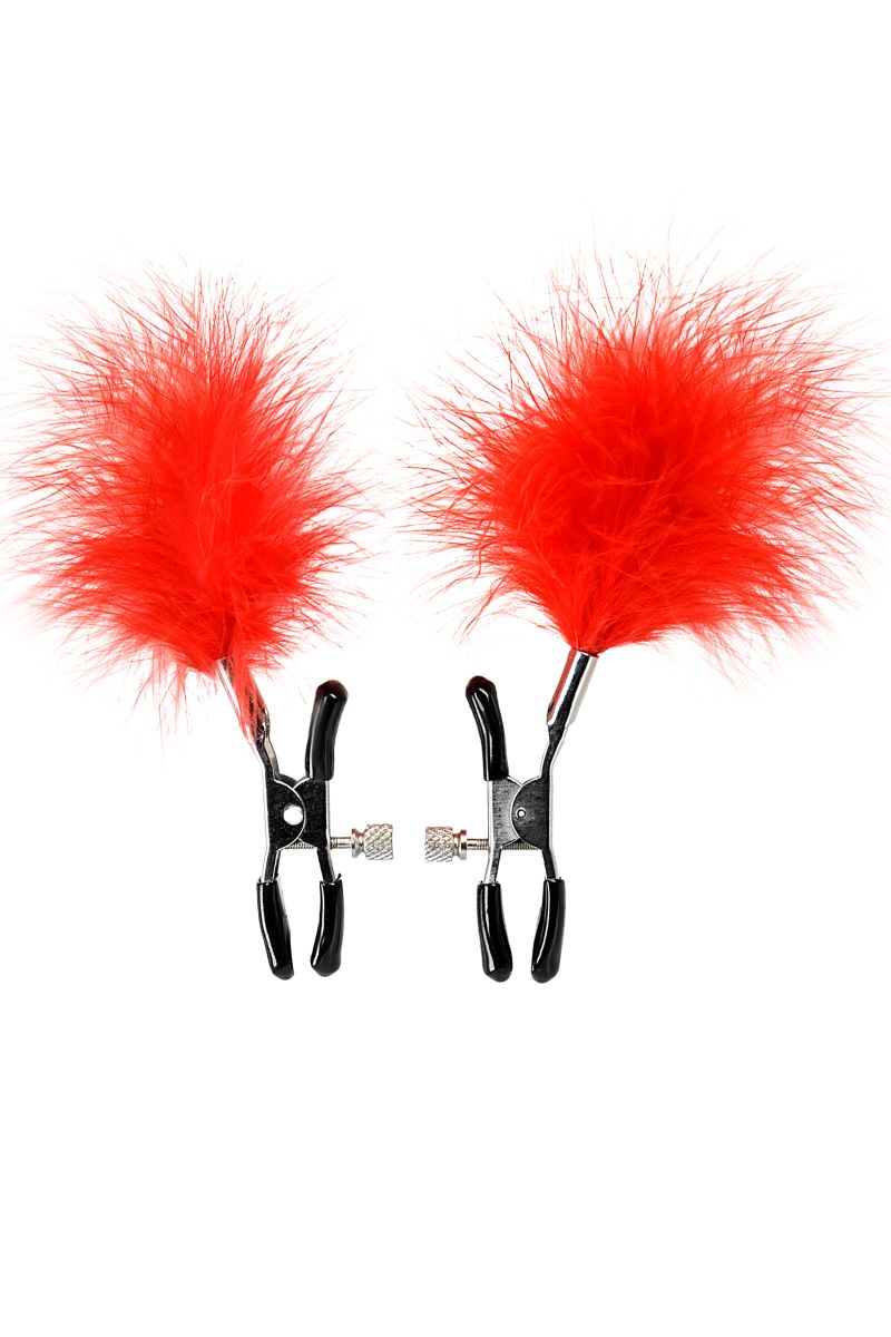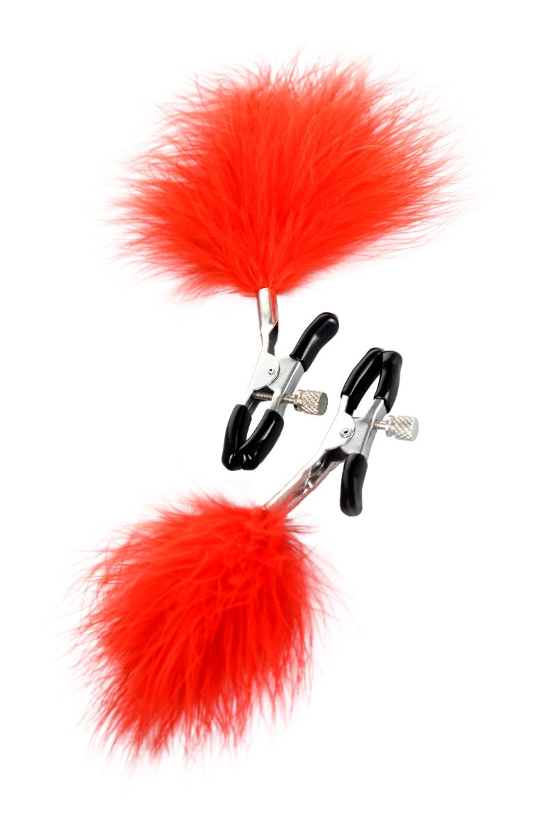 Пожалуй, самые милые из всех зажимов — украшенные перьями. Они стимулируют не только сжатием сосков, но и щекочут грудь. Сдавливание регулируется болтиком и может быть усилено или уменьшено во время интимной игры. Покрытие на концах зажимов защищает нежную кожу.