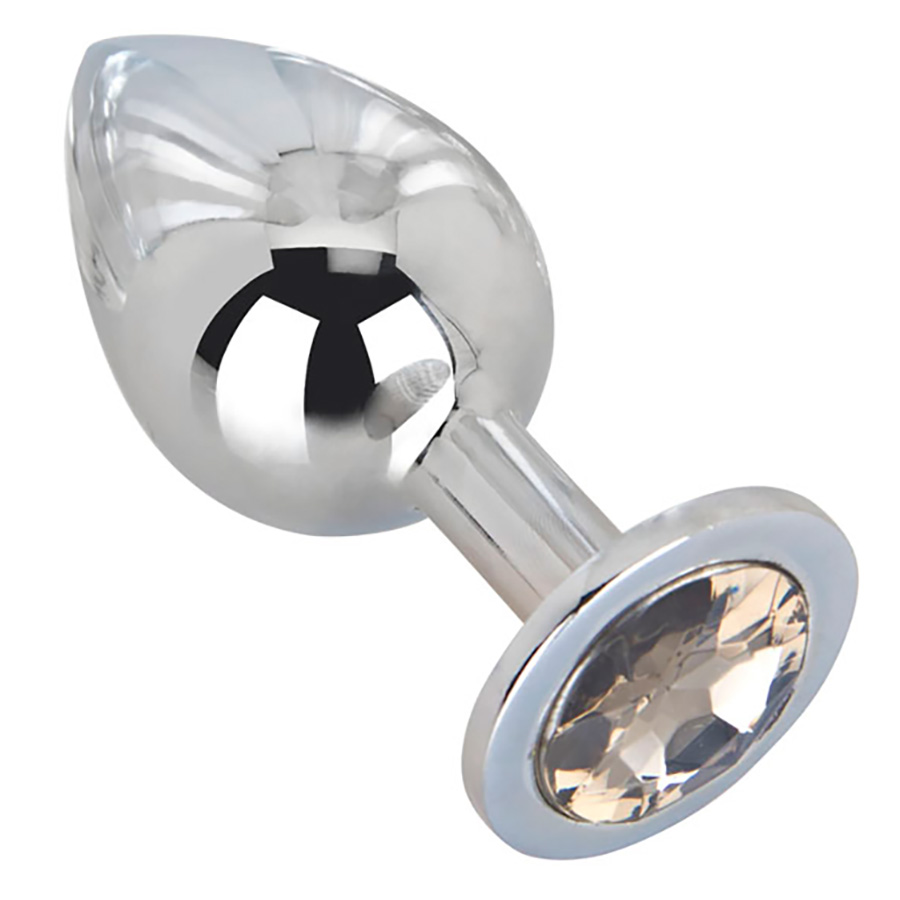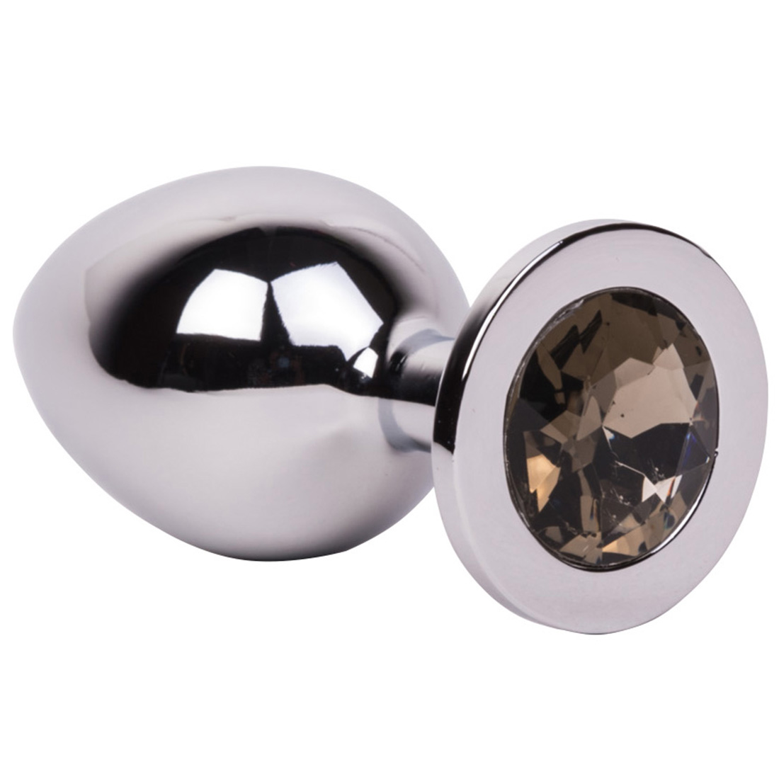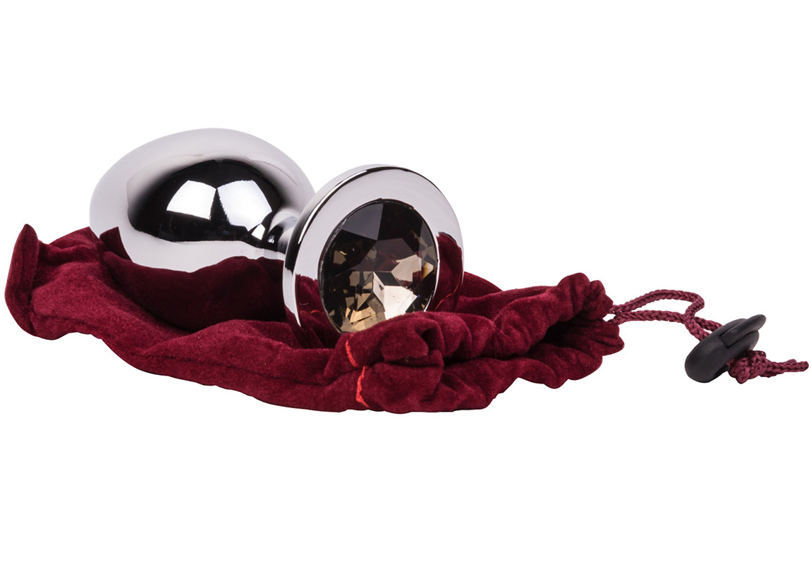 Гладкий большой из отполированной до блеска стали с кристаллом серого цвета в основании.