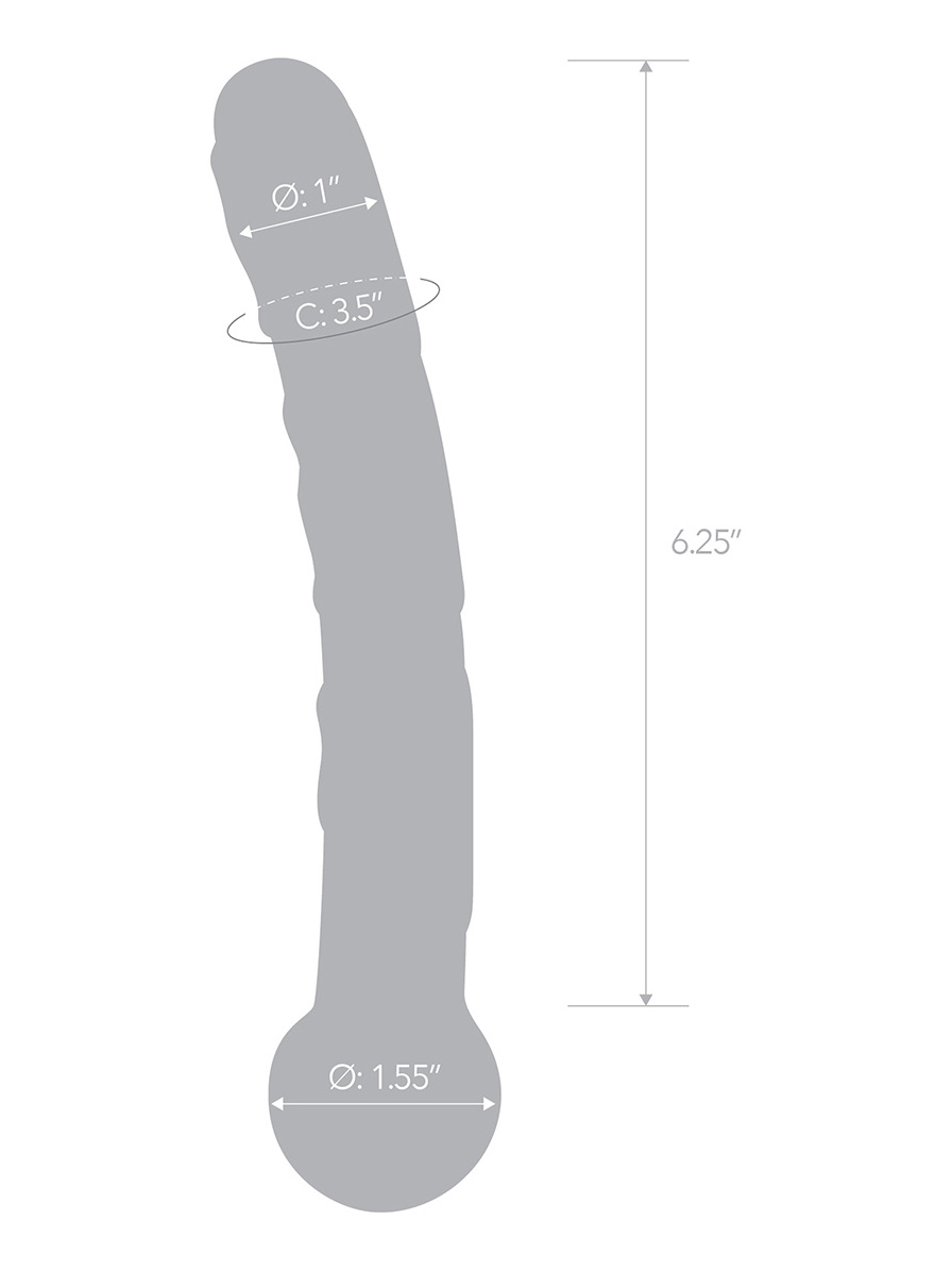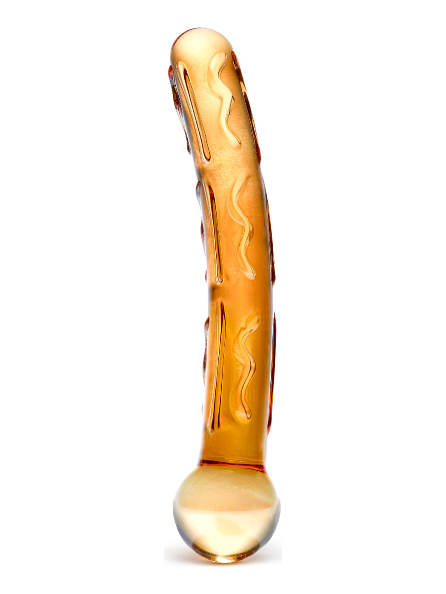 Тонкий фактурный стимулятор загнутой формы с рельефными толстыми изгибами на теле фаллоса. Основание игрушки — большой прозрачный шарик.