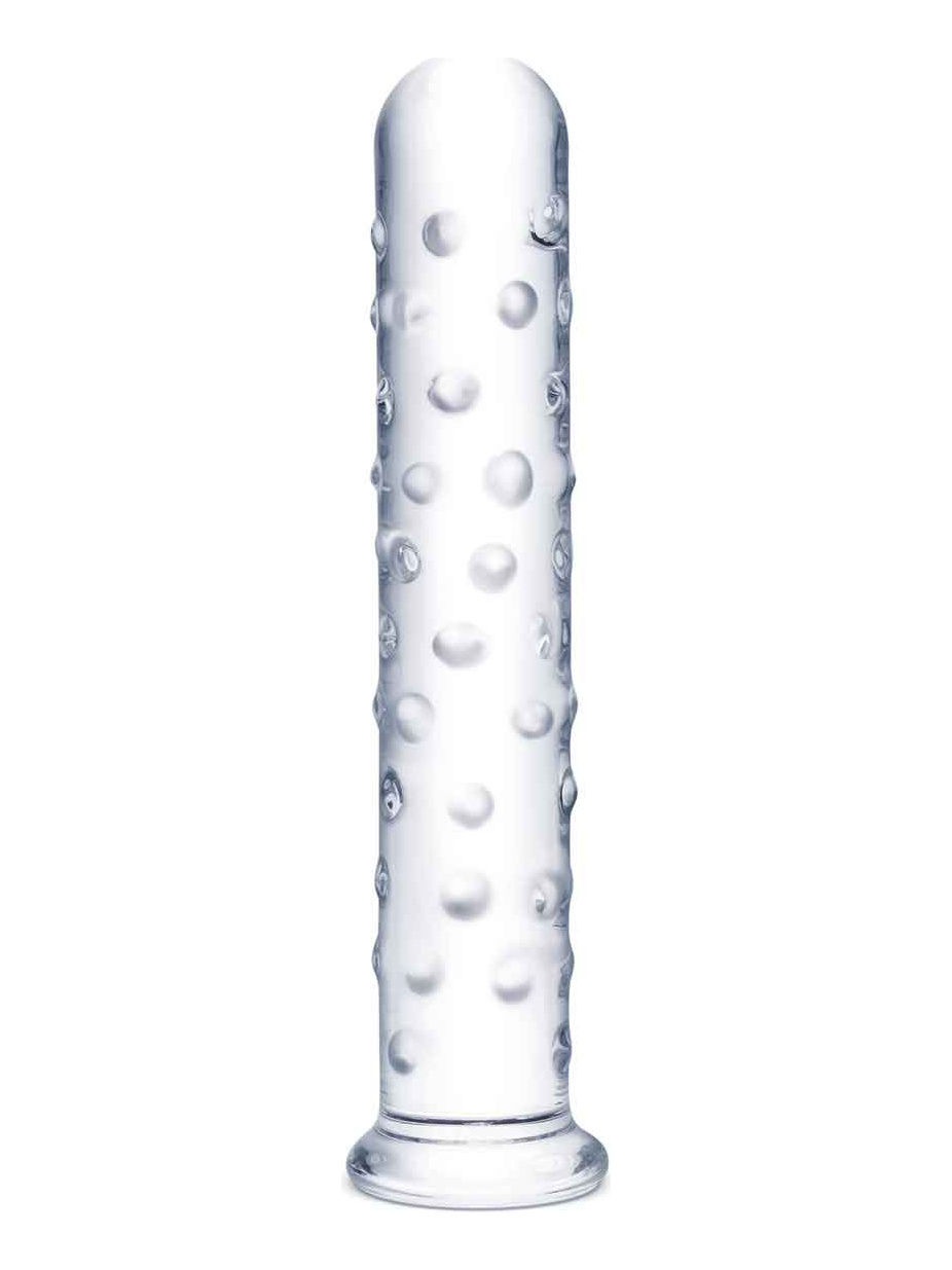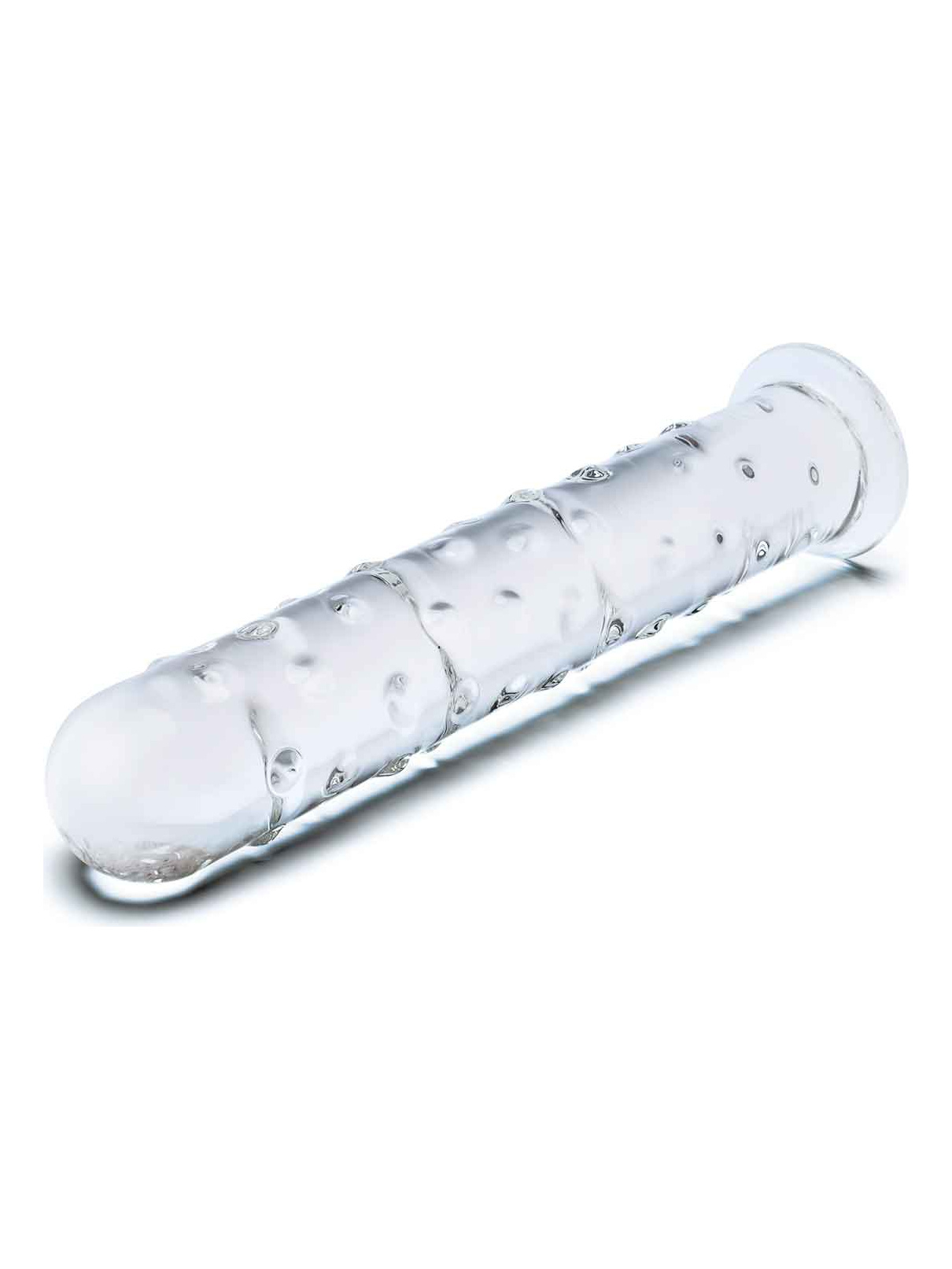 Наслаждайтесь глубоким проникновением и невероятными оргазмами от этого фаллоимитатора из блестящего стекла с пупырышками вдоль всего стержня, которые обеспечивают тщательный массаж, стимулируя все области, которые больше всего этого желают.