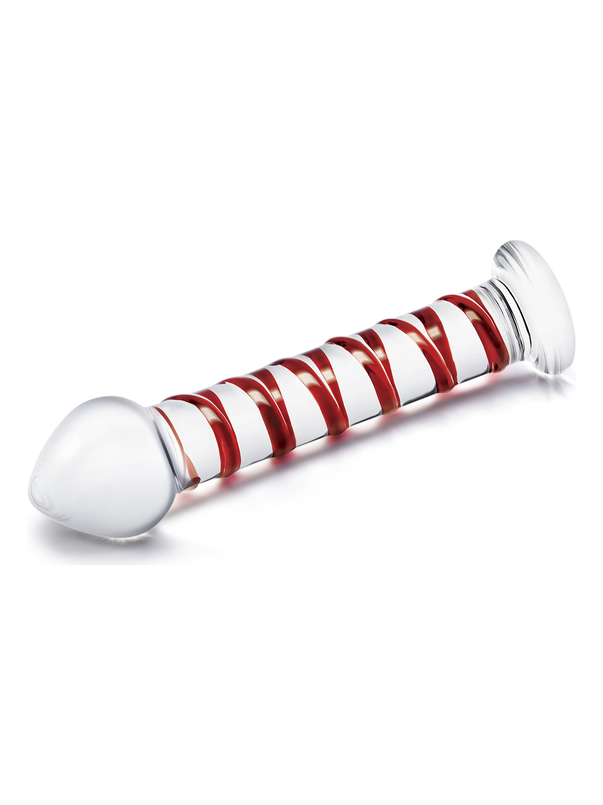 Красивый фаллоимитатор из прочного боросиликатного стекла, увеличенного размера, с красной массажной спиралью по всему стволу фаллоса и крупной головкой. Фаллоимитатор имеет небольшой изгиб, и вы можете, используя его, воздействовать на точку G у женщин при вагинальном использовании или на точку P у мужчин, при анальном использовании. Крупный, тяжелый фаллоимитатор, предназначенный как для соло-стимуляции, так и совместных интимных игр с партнером. Вы можете охладить или нагреть его, используя теплую или холодную воду. Ухаживать за игрушкой тоже очень просто. Промойте ее после использования с мылом, и вытрите насухо или высушите. Для хранения игрушка комплектуется тонким белым сатиновым мешочком с логотипом.