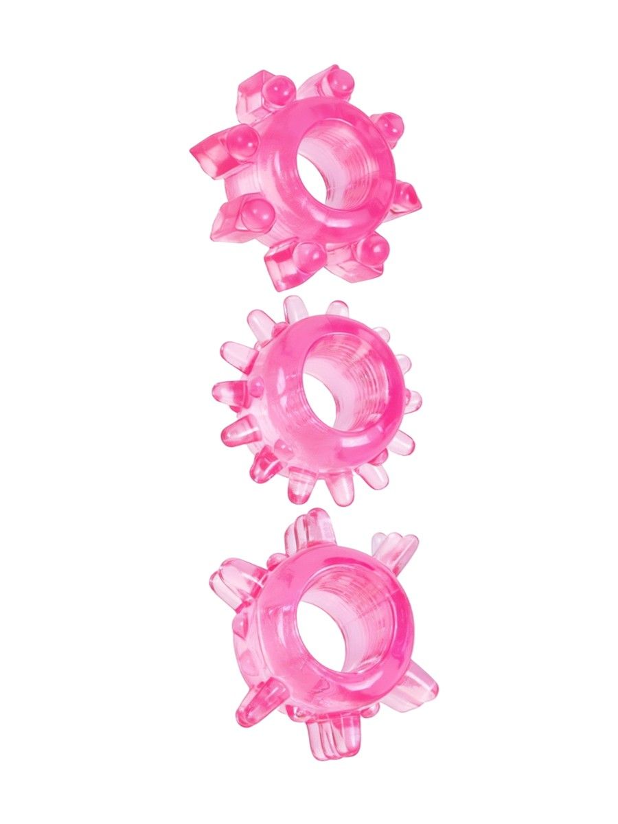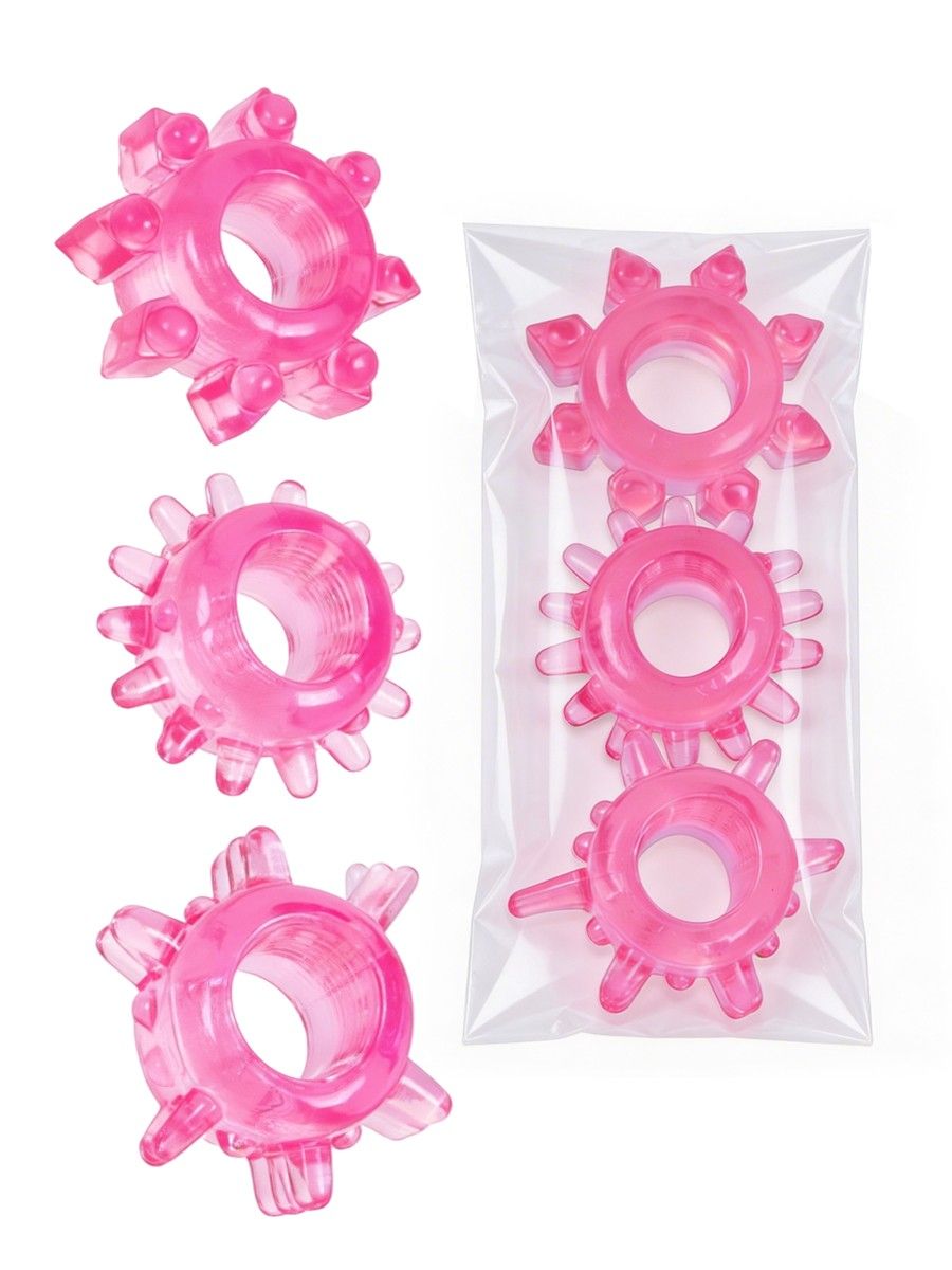 Эрекционное кольцо обеспечит продолжительную эрекцию и поможет продлить интимную близость. «Отростки» на внешней поверхности секс-игрушки будут стимулировать интимные зоны партнёрши. Эрекционное кольцо хорошо тянется. Изготовлено из приятного на ощупь материала. Просто в использовании и уходе. В наборе 3 эрекционных кольца с различным рельефом.