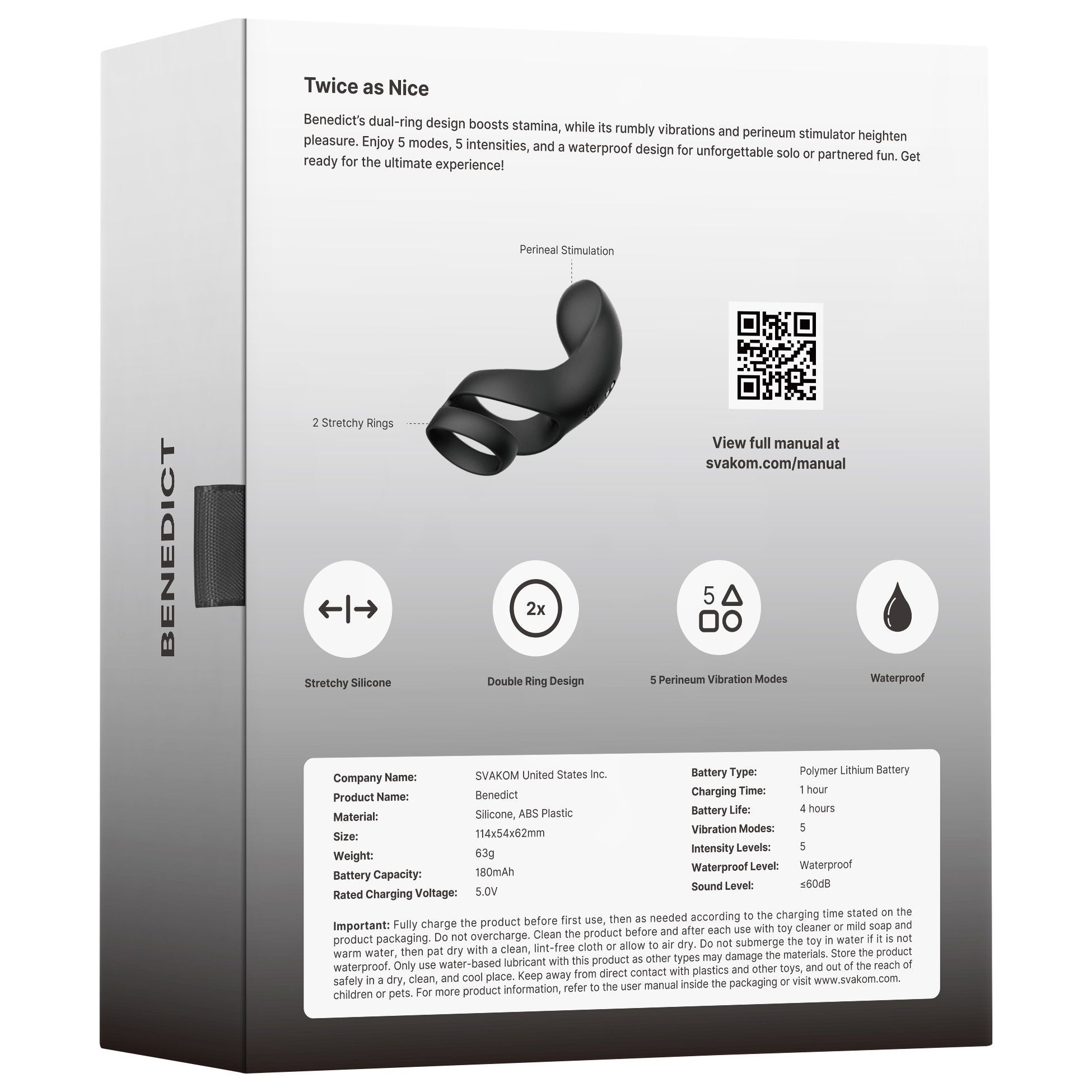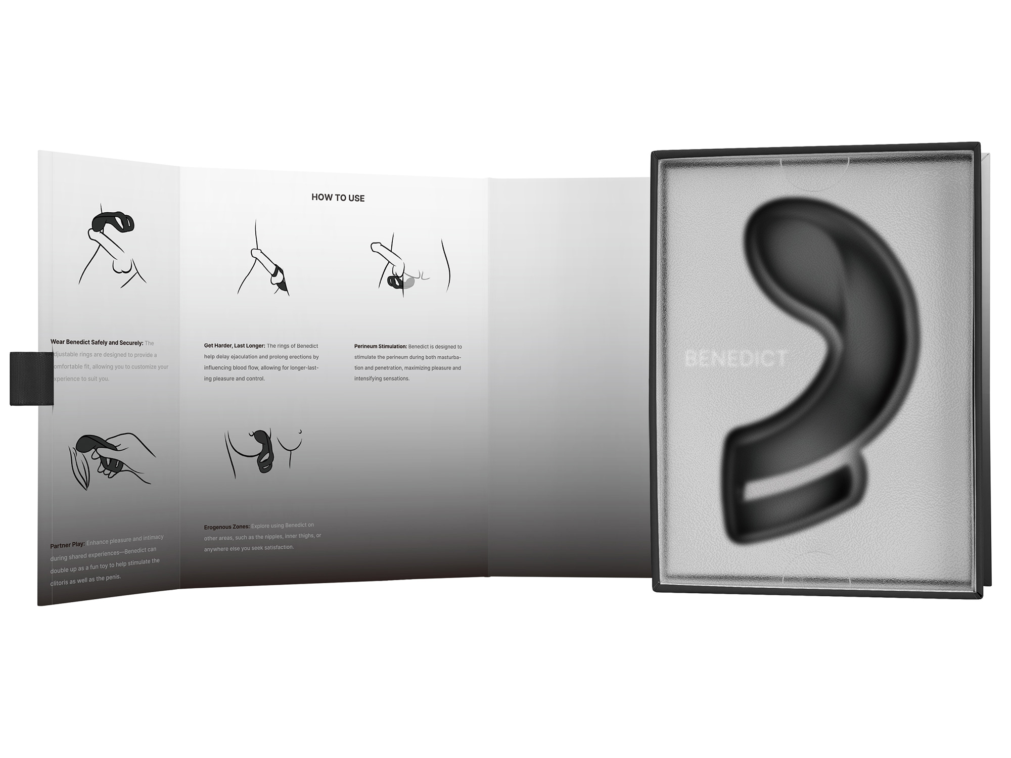 Гибкий материал кольца Benedict прекрасно тянется, поэтому подойдет большинству размеров и форм. А благодаря сверхмягкому и безопасному силикону, он обеспечит комфорт и удобство.