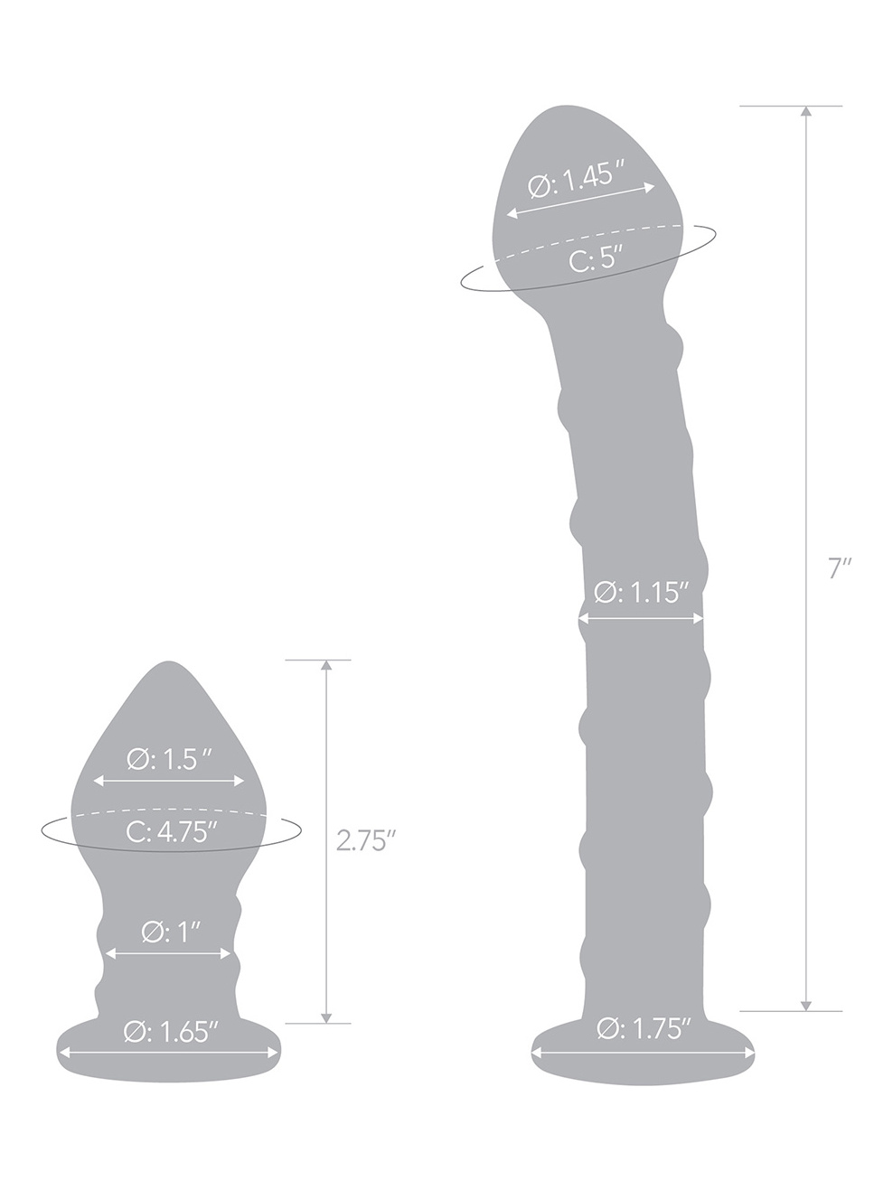 Испытайте непревзойденную двойную стимуляцию с набором, который включает в себя изогнутый фаллоимитатор для стимуляции точки G и удобную анальную пробку для подготовки к анальному сексу и доп. стимуляции. Этот чувственный союз двух прекрасных стеклянных игрушек, которые можно нагревать или охлаждать для дополнительных ощущений станет отличным поводом изучить свое тело и его чувственность.