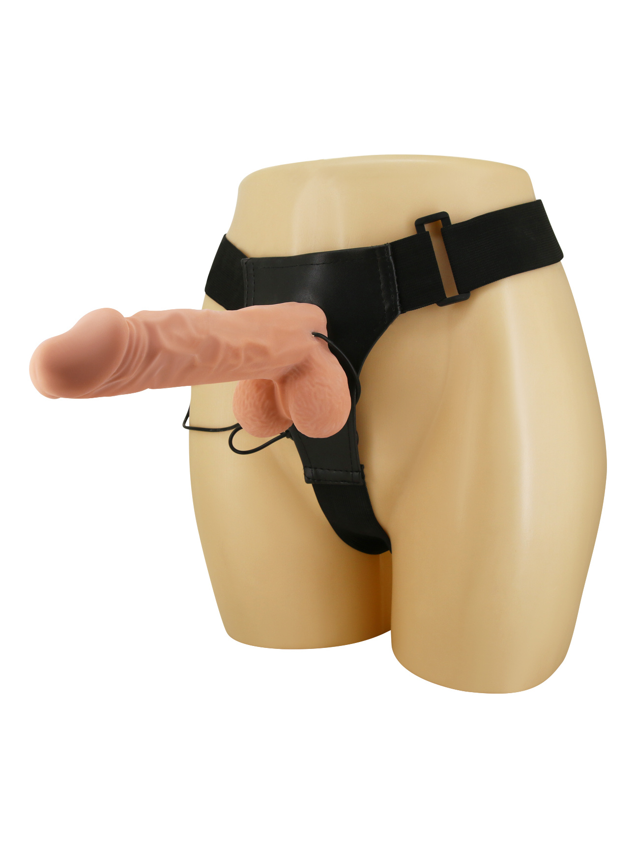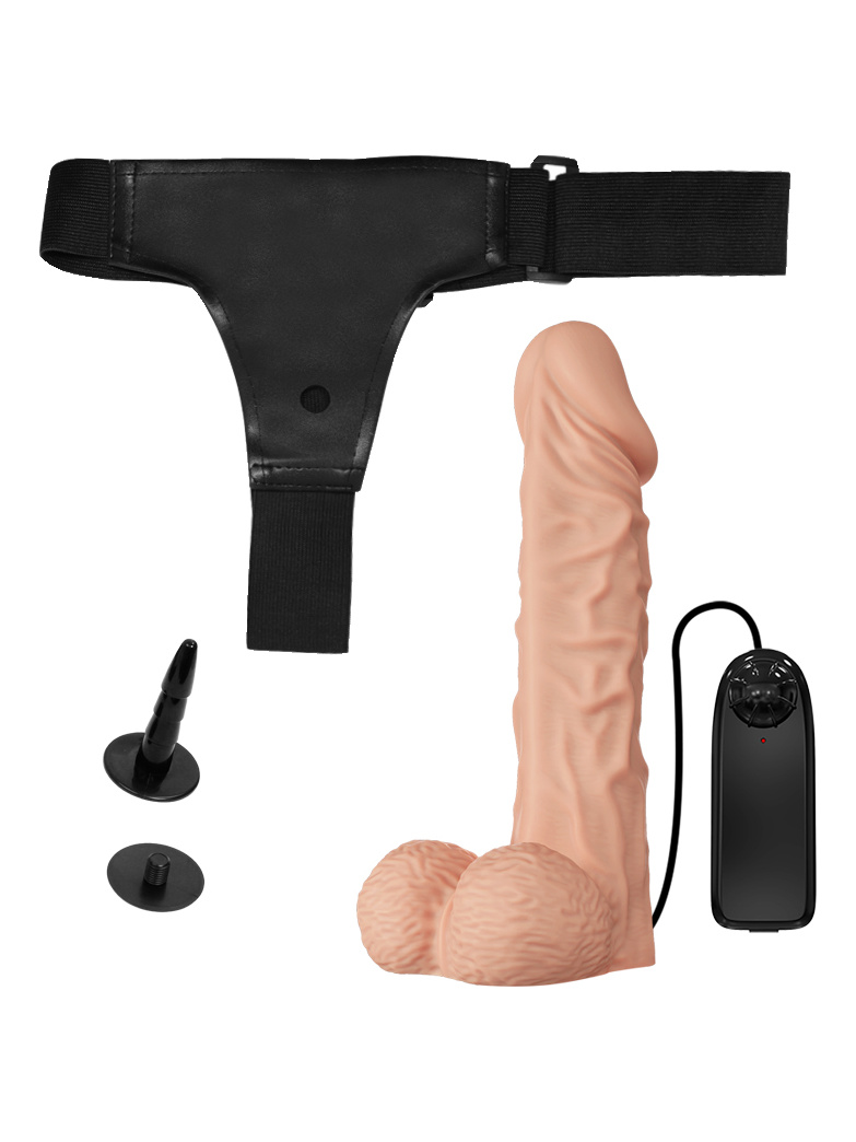 Страпон на регулируемых ремешках с вибрацией. Одна насадка с вибрацией и двойным слоем материала.