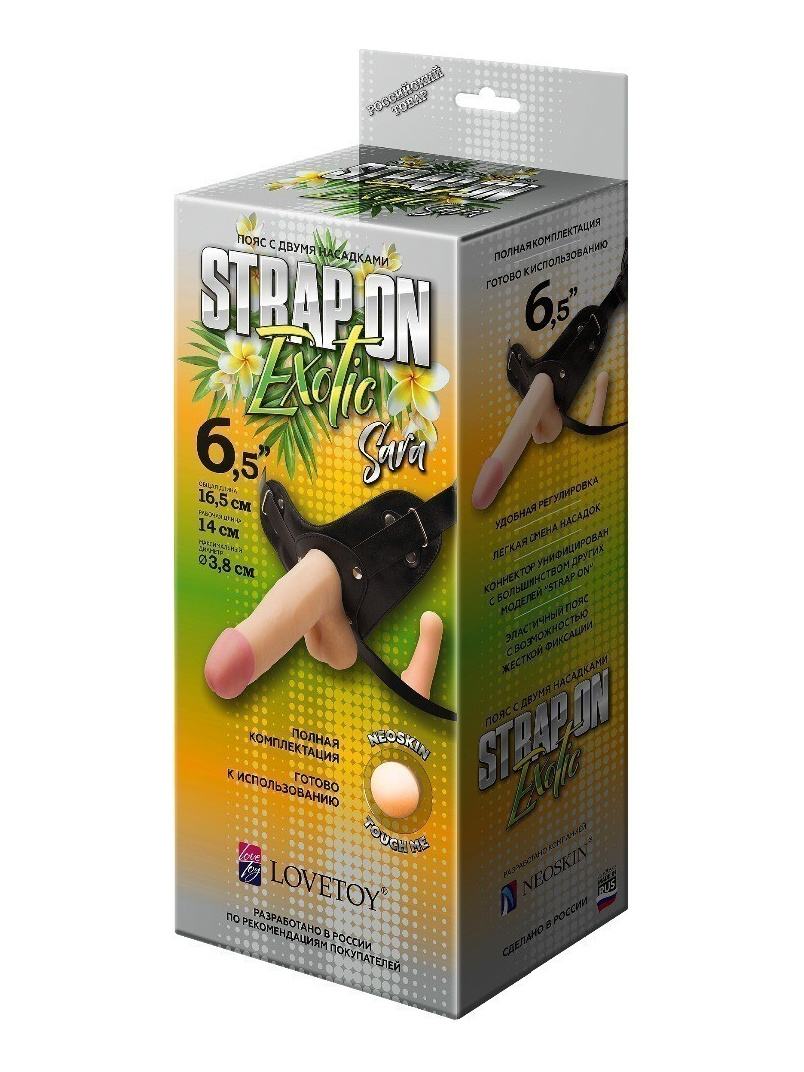Пояс-трусики с 2 насадками Exotic-Sara. В данный комплект входят основная и анально-вагинальная насадки из хорошо зарекомендовавшего себя мягкого и одновременно упругого материала.