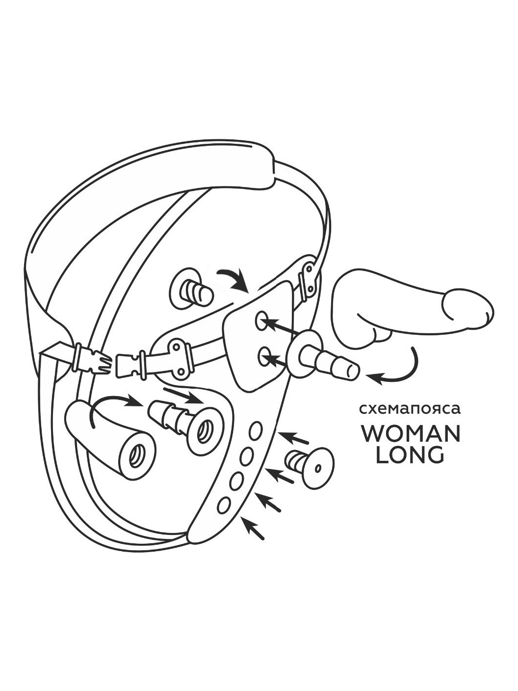 Третье поколение пояса для женщин WOMAN LONG. Изделие рассчитано не только на отношения между женщинами, но также женщиной и мужчиной. Многолетний опыт производства и изучение отзывов покупателей позволили усовершенствовать конструкцию для создания дополнительных возможностей. В частности акцент сделан на разнообразии комбинаций насадок, максимальном комфорте, атравматичности, точной регулировке. Пояс WOMAN LONG относится к товарам премиального класса (S) и снабжен 3 насадками. Одна из насадок крупнее и исполнена из полумягкого материала (неоскин). Насадка меньшего размера полужесткая, обычно используется для анального секса. Самая маленькая, полумягкая, третья насадка — внутренняя. Предназначена для автостимуляции при сексуальном контакте. 3 коннектора и универсальность стыковочного узла позволяют использовать абсолютное большинство насадок, продающихся отдельно. Материалы и сырье прошли добровольную сертификацию и имеют соответствие токсикологическим нормам.