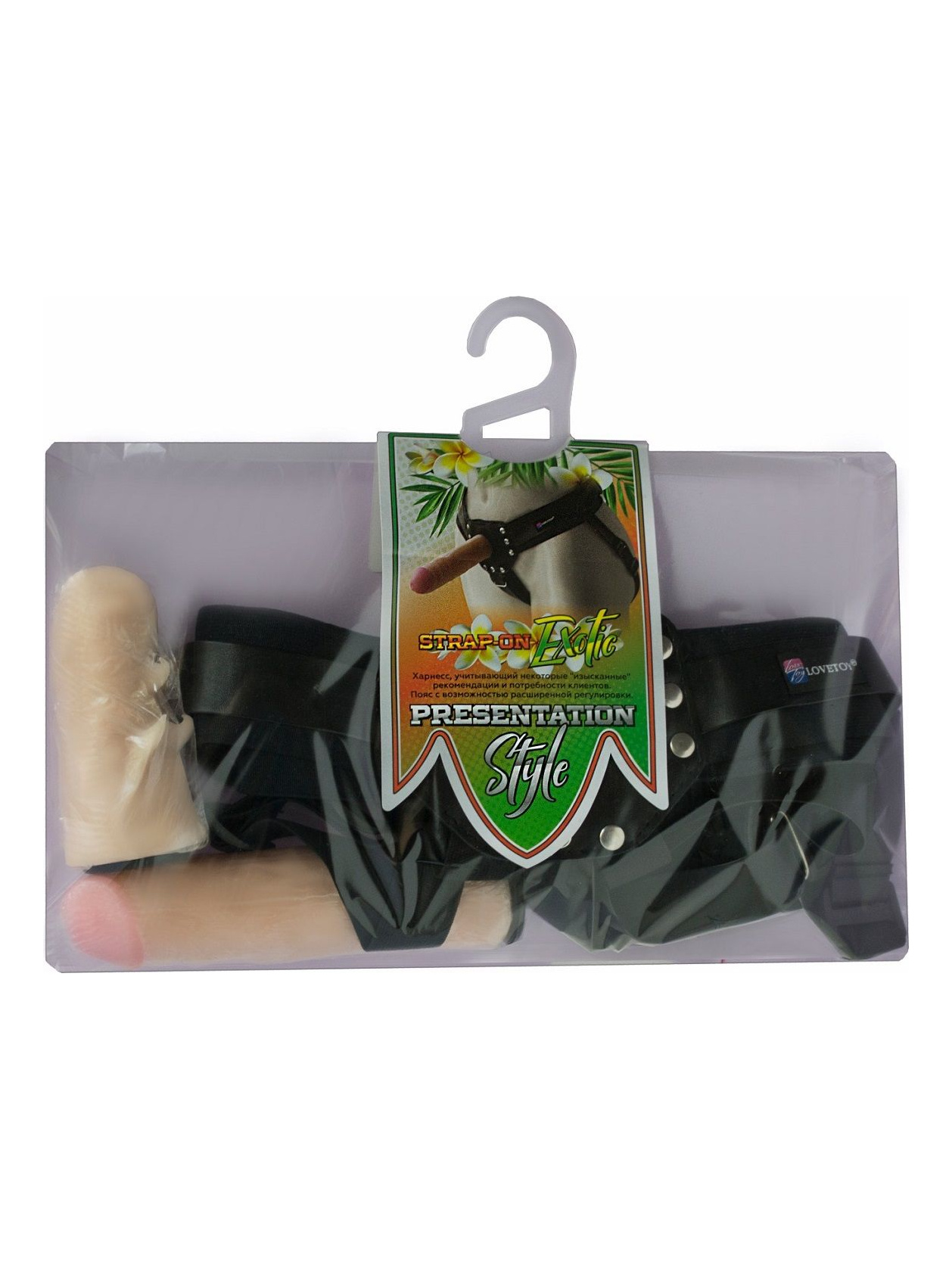 Женский пояс-трусики с двумя насадками. Для дополнительной насадки в комплекте передвижной коннектор с мягкой бархатной подкладкой для комфортного использования. Размер легко регулируется при помощи лент. Имеет насадку в виде члена и насадку с пупырышками.