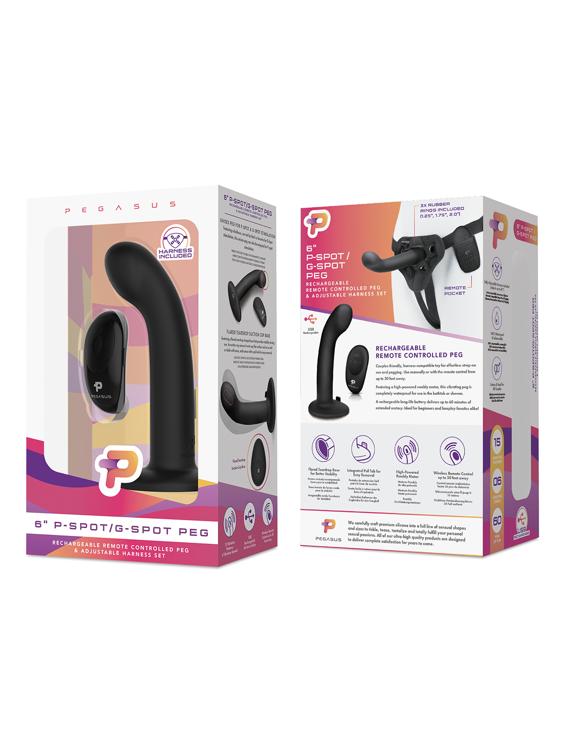 Если вы ищите прямую и точную стимуляцию простаты — этот гладкий, гибкий силиконовый страпон с вибрацией заслуживает вашего особого внимания. Выпуклый и изогнутый наконечник игрушки подойдет для направленной стимуляции как точки P, так и точки G. Присоска у основания фаллоса позволяет закрепить его на стене, полу или другой плоской поверхности, чтобы играть без помощи рук. Регулируемые ремни в наборе позволяют использовать Pegasus как полноценный страпон, добавляя приятные ощущения с помощью вибрации, которая регулируется беспроводным пультом дистанционного управления, Заряжайте игрушку и наслаждайтесь бесконечно, даже когда находитесь в душе или ванной! В наборе есть плотный брендированный мешочек для хранения. Водонепроницаемый, оснащен шестью ступенями мощности и пятнадцатью режимами вибрации. Управлять им можно как при помощи пульта, так и кнопкой на основании игрушки. 60 минут беспрерывной игры.