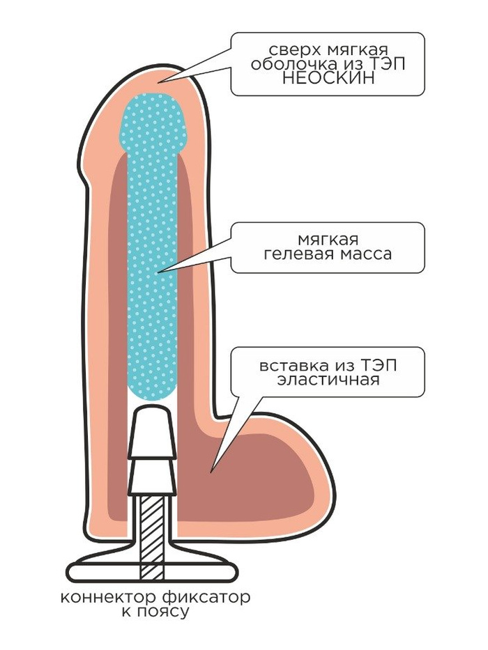 Комплект из трусиков с насадкой. Трусики изготовлены из кожи, комфортные и мягкие, удобно регулируются до необходимого размера. Насадка в виде члена с мошонкой, изготовленная из неоскин, имеет ярко выраженную головку и прорисованные вены.