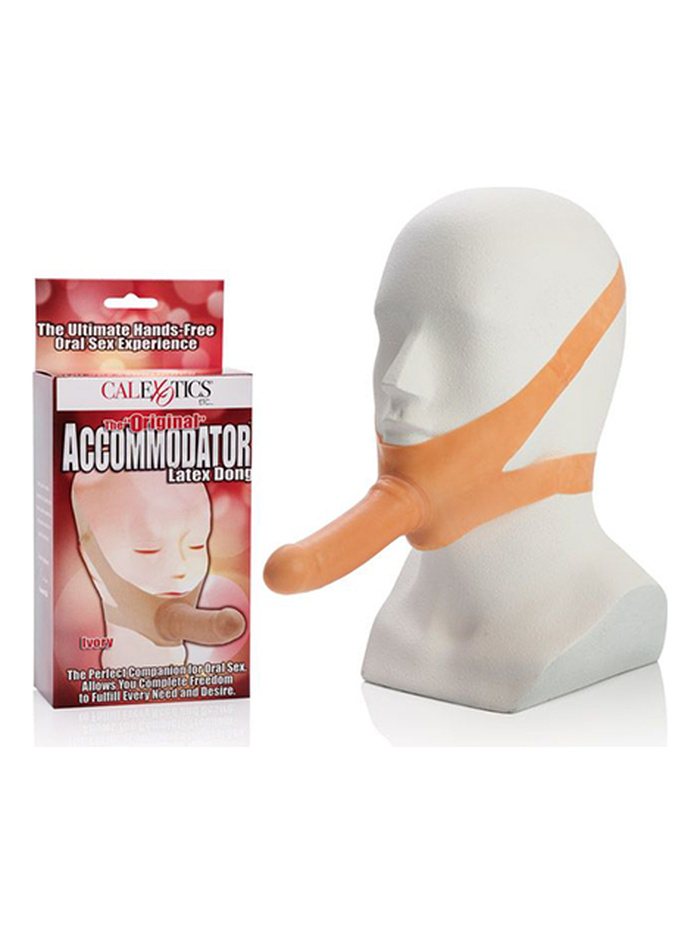 Фаллос, изготовленный из латекса. Имеет широкие ленты-крепления для фиксирования на подбородке, которые растягиваются до необходимого размера. Приятный на ощупь, не имеет швов, гладкий и гибкий.