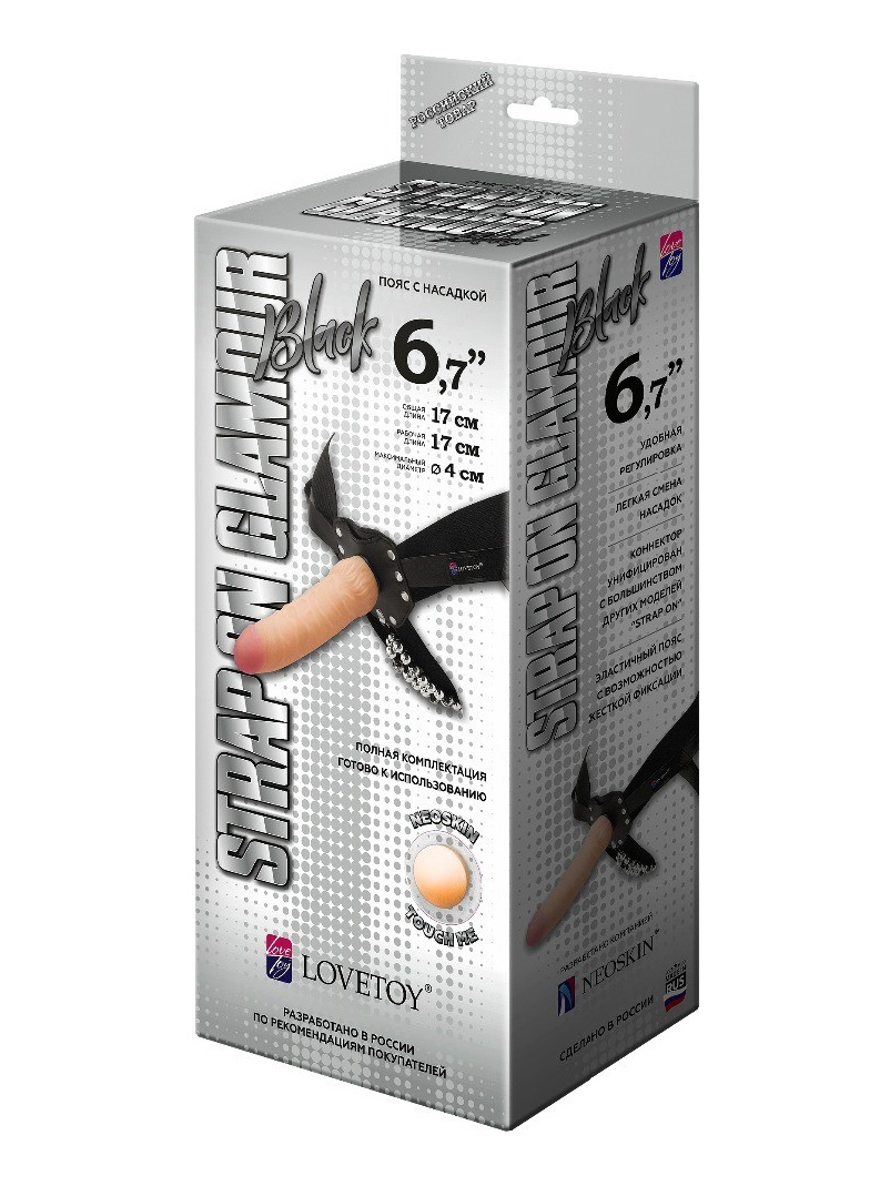 Пояс-трусики с насадкой Glamour. Аккуратный, с удобной системой фиксации. Насадка реалистичная из неоскин.
