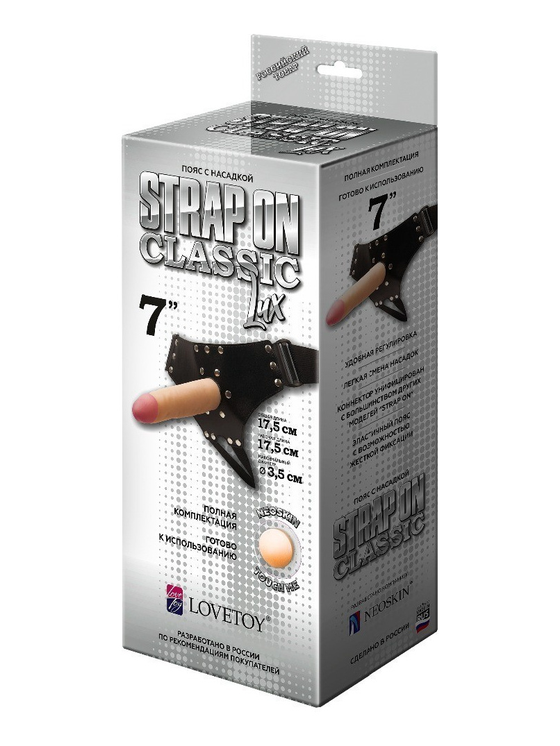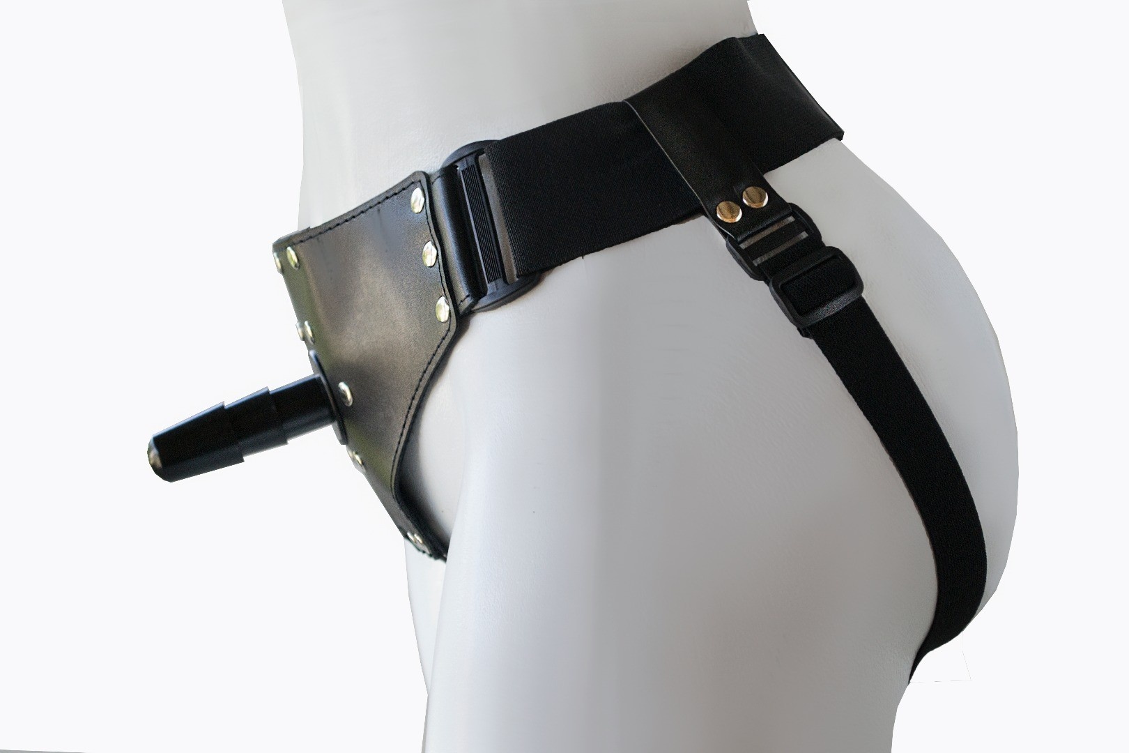 Одна из классических версий поясов — харнесс. Трусики сделаны из нескольких слоев полиуретановой стрейч-кожи (снаружи) и бархат внутри. Подобранные для этой модели материалы зарекомендовали себя, как наиболее удобные и практичные для этих целей. Фиксация пояса сделана из широкой эластичной ленты и бандажа для плотного охвата спины. Дополнительно имеется фиксация двумя кожаными ремешками, проходящими между ног.