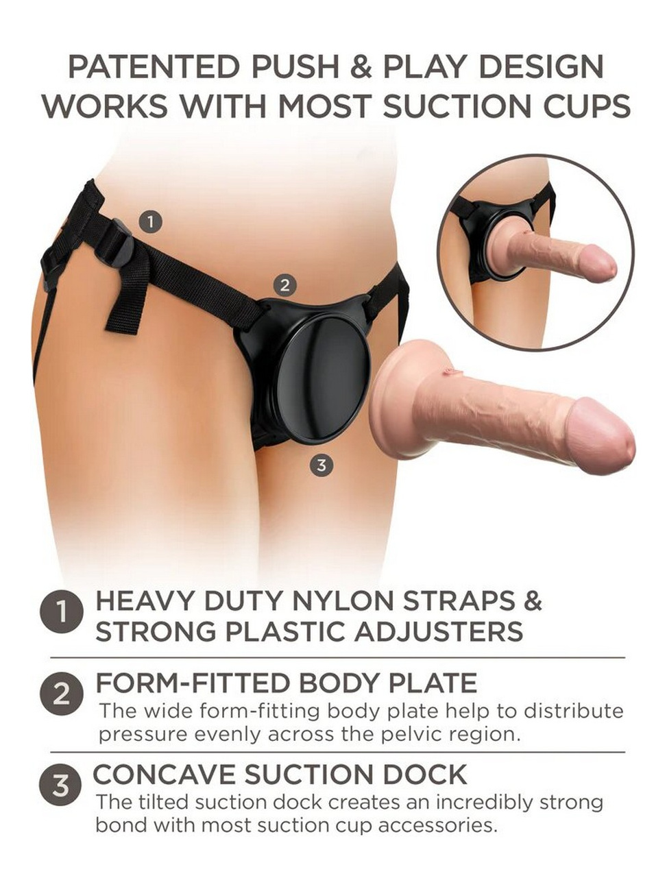 Твёрдая присоска была разработана для превосходного прилегания, что даёт вам больше универсальности и удобства во время использования. Диаметр стыковочной пластины составляет 86 мм, и на неё можно установить любой фаллоимитатор с присоской диаметром меньше этого размера. Пояс регулируется до 137 см в объеме бедер.