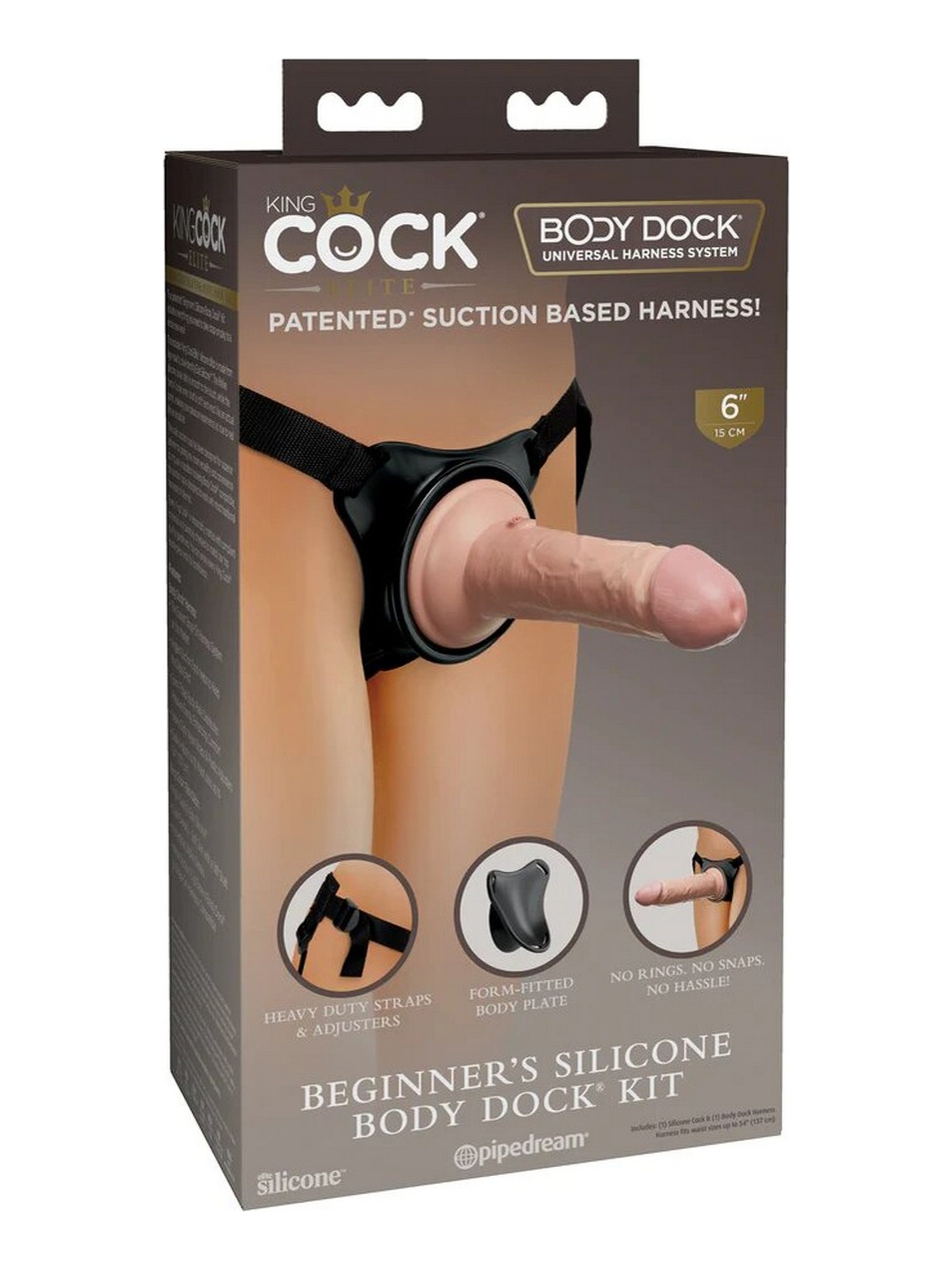 Запатентованный комплект для начинающих Body Dock включает в себя всё, что вам нужно, чтобы поднять игру со страпоном на совершенно новый уровень! Входящий в комплект силиконовый фаллоимитатор King Cock Elite изготовлен из высококачественного Elite Silicone двойной плотности. Реалистичная силиконовая внешняя оболочка гладкая на ощупь, а твёрдый силиконовый внутренний стержень жёсткий и прямой, что делает ваше удовольствие максимально приближенным к реальной жизни!