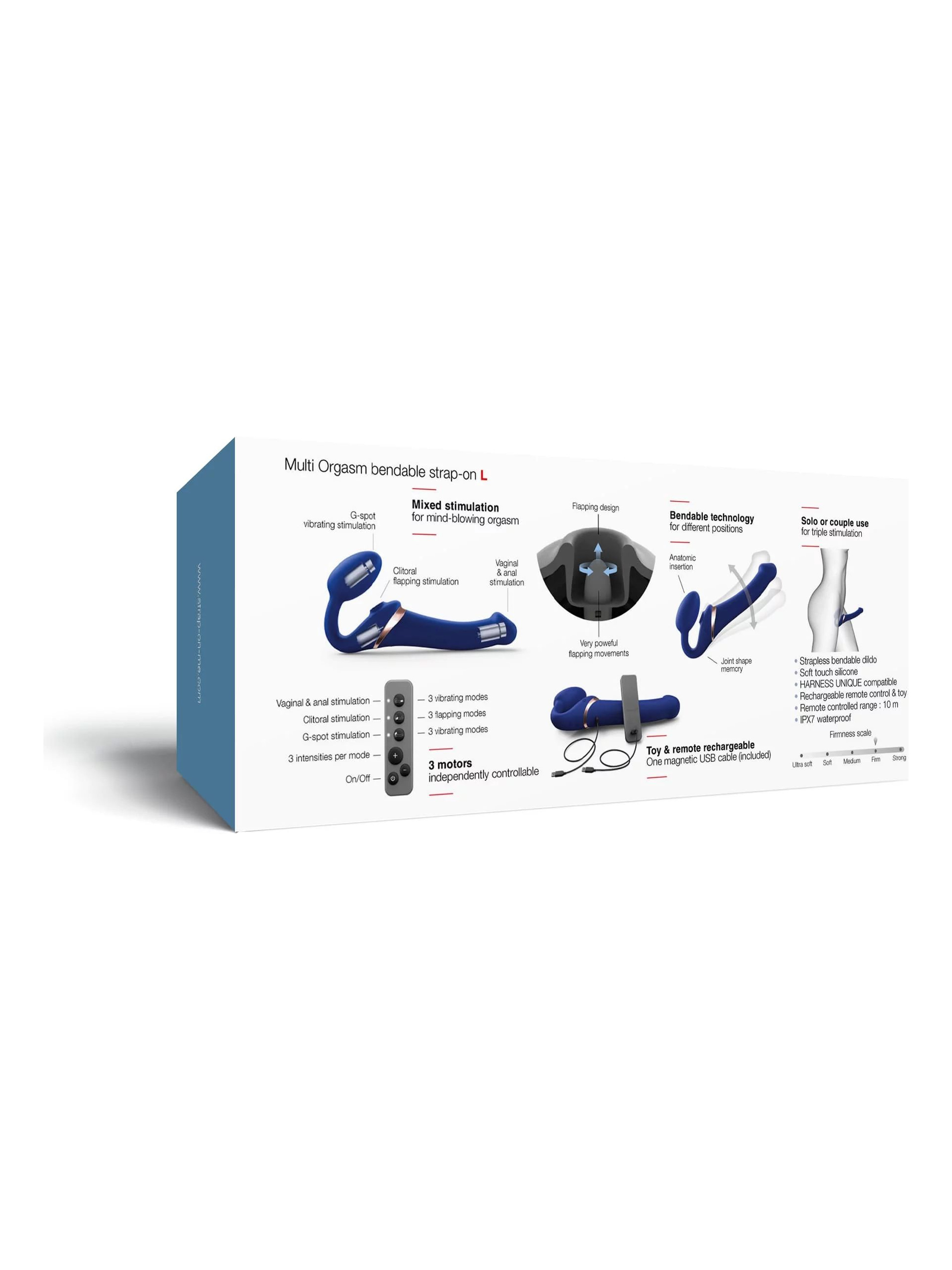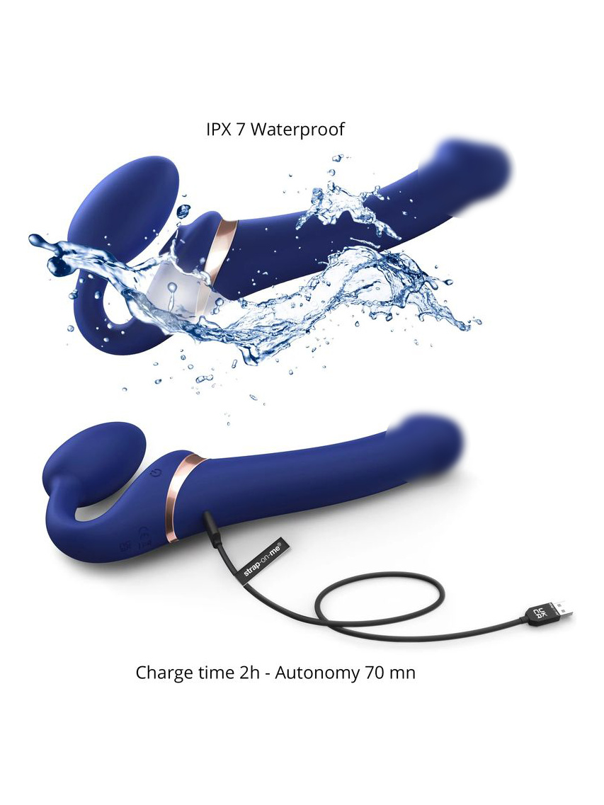 Strap-On-Me Multi Orgasm сочетает в себе элегантность и современность. Вибрирующий страпон оснащен 3 независимыми моторами, которыми можно управлять на расстоянии с помощью пульта дистанционного управления. Multi Orgasm изготовлен из силикона, без швов, с мягкой эластичной текстурой для комфортного проникновения. Водонепроницаемость IPX7.