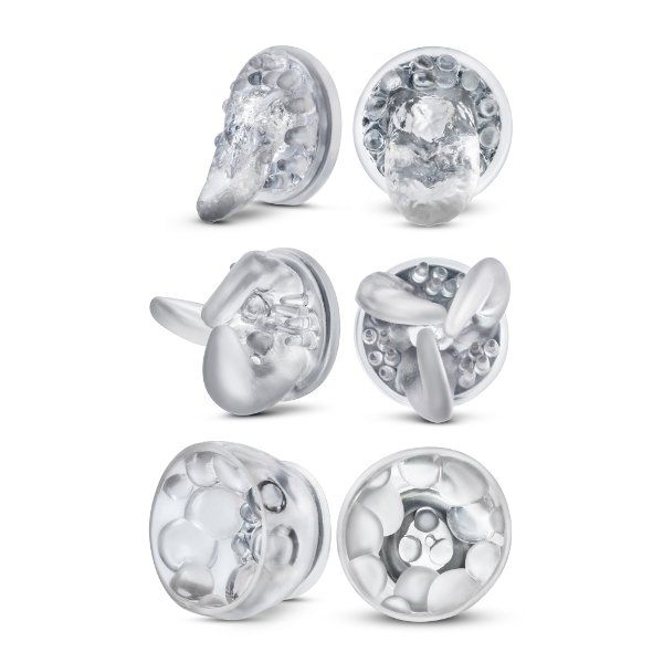Прозрачные вибронасадки на соски со сменными колпачками Titillator. Можно менять колпачки - 3 вида в комплекте: язычки, шишечки и клешни. Управление вибрацией происходит при помощи проводного пульта.