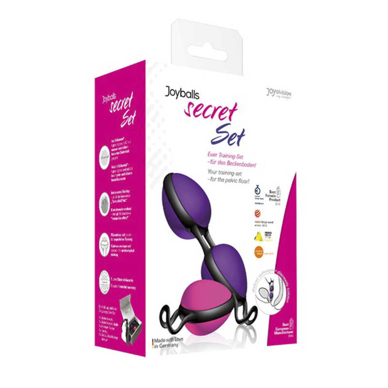 Набор вагинальных шариков Joyballs Secret Set: двойные и одинарные. Эргономичная форма для максимально комфортного введения и извлечения, а также укороченная поисковая петля для наилучшего контроля шариков внутри — максимально комфортное ношение.