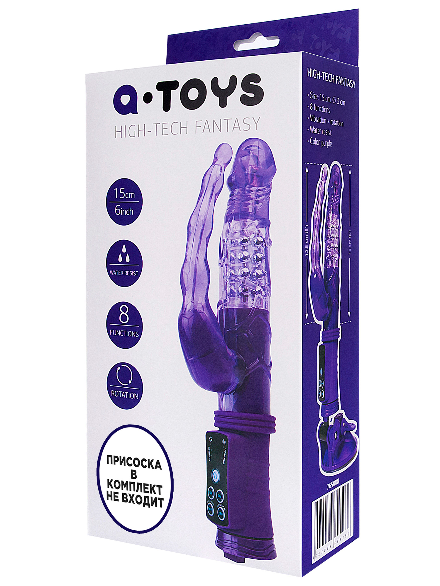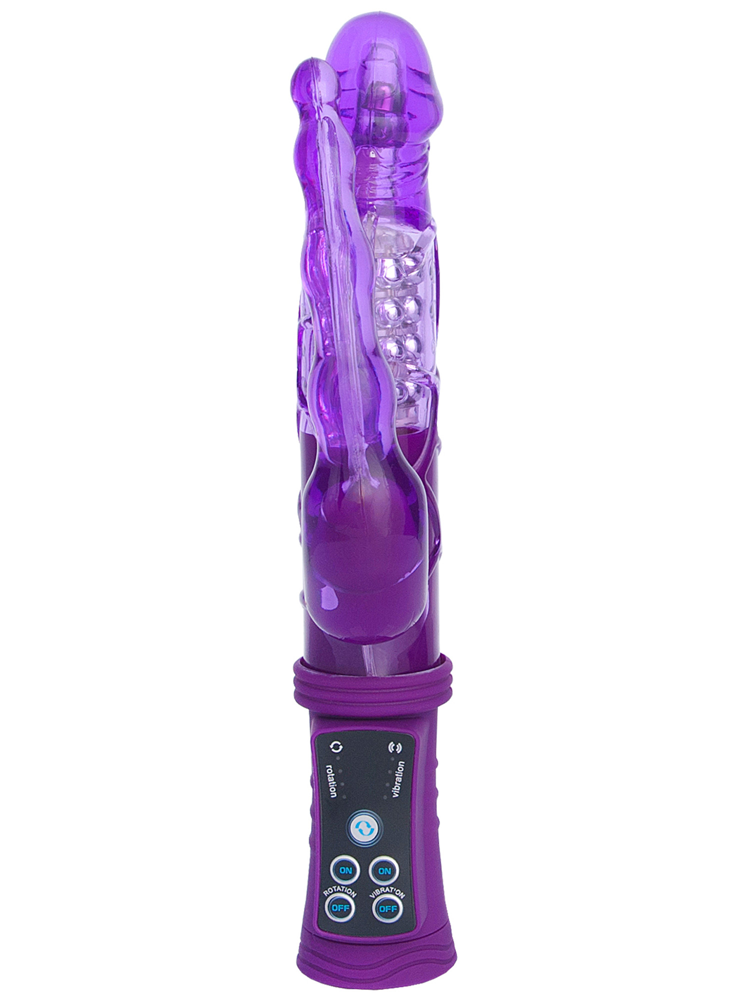 Вибратор A-Toys с функцией вращения ствола и мощным анальным стимулятором. Имеет 8 режимов вибрации и ротации, скорость которых удобно управляется кнопками на рукояти игрушки. Интимная игрушка имеет специальный отросток в виде анальной елочки, что позволяет проводить одновременную стимуляцию вагины и ануса. Вибратор выполнен из высококачественного, легкого в эксплуатации, нетоксичного, гипоаллергенного, не пористого материала TPR. В стволе девайса размещено несколько рядов металлических шариков, которые многократно увеличивают возбуждающий эффект.