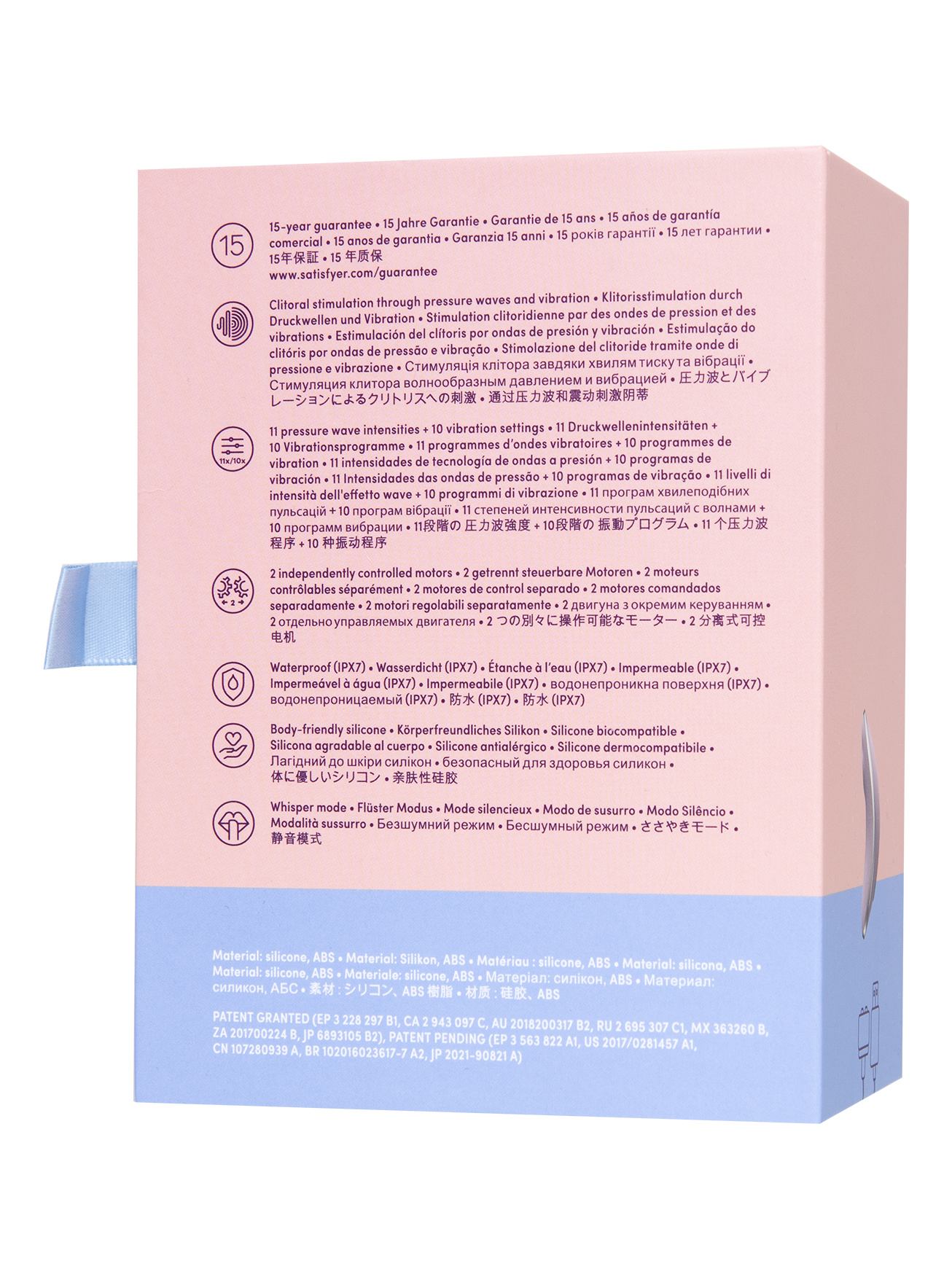 Потрясающий шелковистый на ощупь высококачественный гипоаллергенный силикон – визитная карточка бренда Satisfyer. Поверхность раструба мягко и деликатно стимулирует клиторальную область, тактильно нежный и приятный на ощупь, силикон быстро адаптируется к температуре вашего тела. Чтобы получить максимум удовольствия и сохранить материал в наилучшем виде, рекомендуется пользоваться качественной смазкой на водной основе. После использования обязательно очищайте вибратор теплой водой со специальными бактерицидными спреями для интимных товаров.