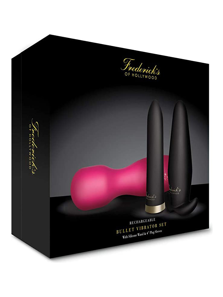 В комплекте: usb-вибратор-пуля, розовая силиконовая насадка-ванд, черная насадка в форме анального плага, черный чехол для хранения, оберточная бумага для коробки, атласная лента с подарочной открыткой в конверте.