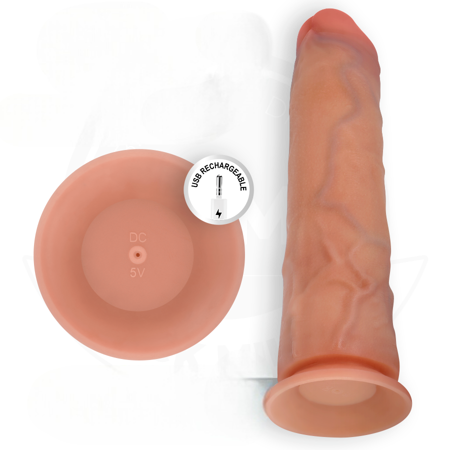 Реалистичный вибратор большого размера, созданный для глубокой и интенсивной стимуляции. Анатомичная форма с естественным изгибом точно воздействует на точку G, а проработанная текстура с выраженной головкой и рельефными венами усиливает ощущения. Внутренний жёсткий стержень в сочетании с слегка гибкой поверхностью имитирует плотность естественной эрекции. Мощный и при этом тихий мотор предлагает несколько режимов вибрации — от мягких пульсаций до глубоких непрерывных волн — с управлением через беспроводной пульт на расстоянии до 10 метров. Вибратор выполнен из премиального медицинского силикона, гипоаллергенного и безопасного для тела, оснащён присоской для использования без рук и совместим с трусиками-страпоном. Полная водонепроницаемость IPX7 позволяет использовать его в душе или ванне, а перезаряжаемый аккумулятор обеспечивает до 90 минут работы без батареек.