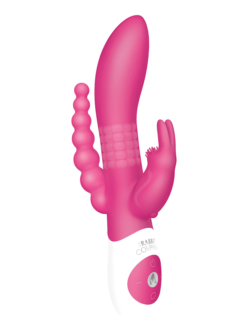 Розовый массажер-кролик для двойного проникновения с вращающимися шариками. Вибраторо создан для стимуляции сразу 3 чувствительных зон - клитора, g-точки и анальной зоны.